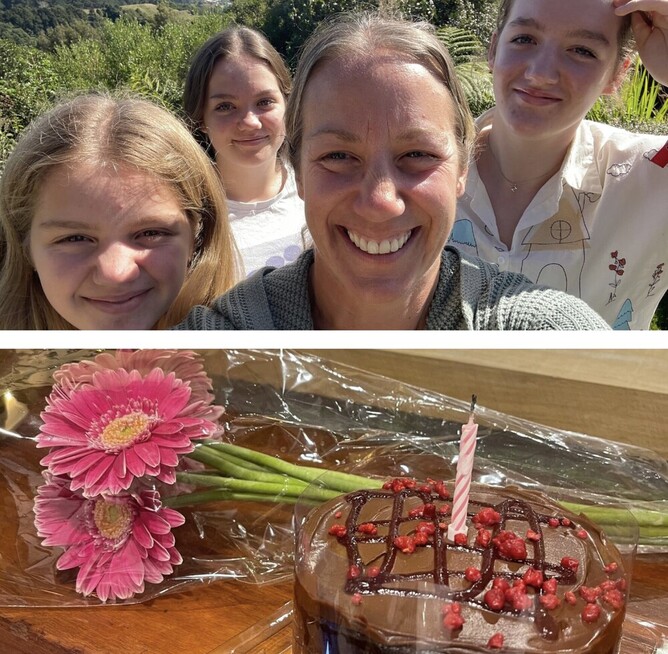 I spent the morning of my birthday with the girls - we went out for breakfast together - and then drove back to New Plymouth in time for work. My new work colleagues bought me a chocolate cake and a bunch of flowers, and it was probably the first year that I hadn't been surrounded by my loved ones.